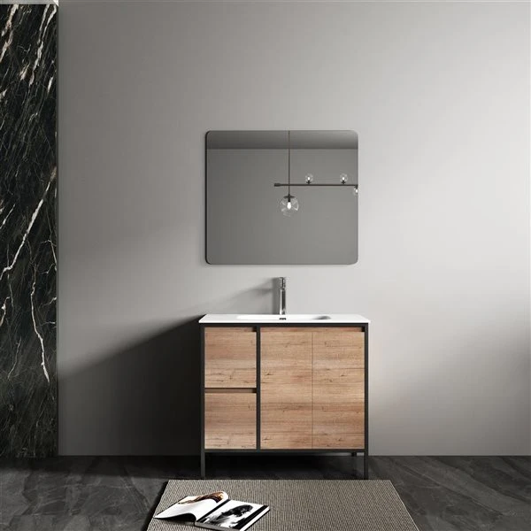 Enhance your bathroom with the GEF Avery 35.83-in Rough Oak Single Sink Vanity! Featuring a stylish oak finish and a sleek white ceramic top, it blends elegance with function. Shop now for exclusive discounts