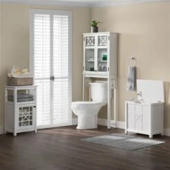 Alaterre Coventry 39-in W X 48-in H X 8-in D White Wood Over The Toilet Etagere With Tall Side Shelf