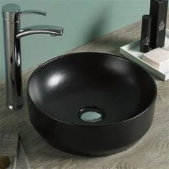 American Imaginations Black Ceramic Vessel Square Bathroom Sink With White Drain (16.1-in X 16.1-in)