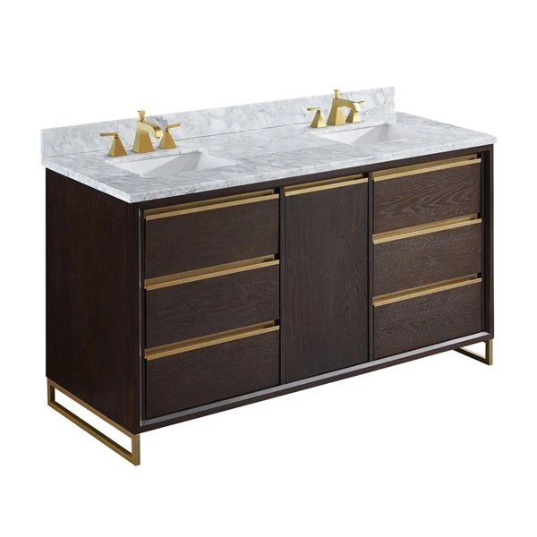 A&E Bath & Shower Modern 60-in Brown Double Sink Bathroom Vanity With White Marble Top