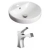 - Includes: 1 bathroom sink faucet in chrome, 1 bathroom sink drain in chrome, 1 bathroom vessel sink in white