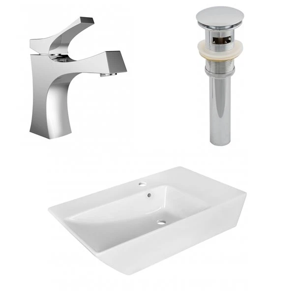 American Imaginations 15.5-in X 25.5-in White Ceramic Vessel Rectangular Bathroom Sink Kit