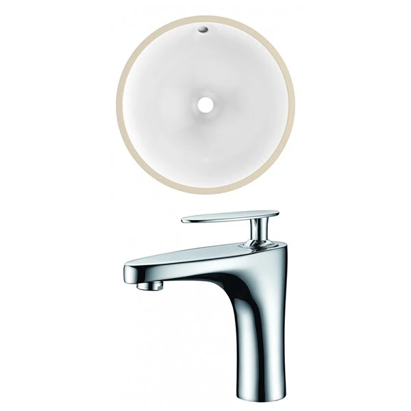 American Imaginations 16.5-in L X 16.5-in W Undermount Round Bathroom Sink With Faucet And Overflow Drain – White Enamel