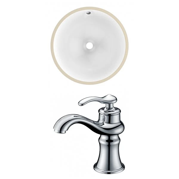 American Imaginations 16.5-in L X 16.5-in W Undermount Round Bathroom Sink With Faucet And Overflow Drain – White Finish