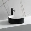 - Includes 1 white bathroom sink and 1 chrome sink faucet