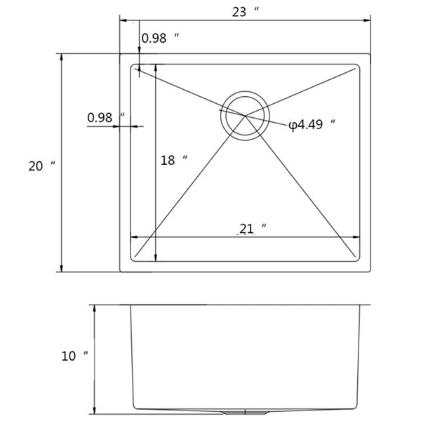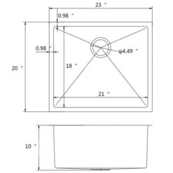 - 23-in Width (left to right) 20-in Depth (back to front) 10-in Height (top to bottom)
