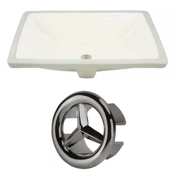 - This product include: 1x bathroom undermount sink in biscuit colour, 1x overflow cap in brushed nickel colour