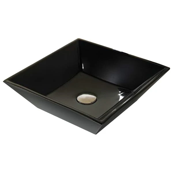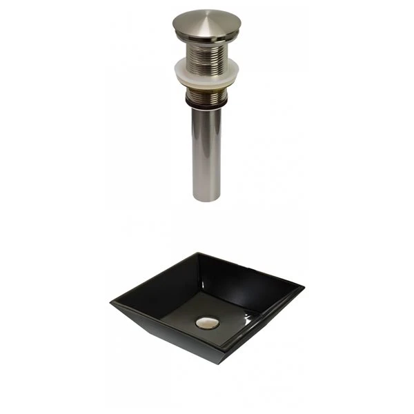 American Imaginations Black Ceramic Vessel Square Bathroom Sink With Brushed-Nickel Drain (16.1-in X 16.1-in)