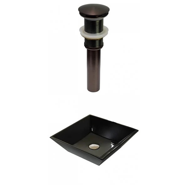 American Imaginations Black Ceramic Vessel Square Bathroom Sink With Oil-Rubbed Bronze Drain (16.1-in X 16.1-in)