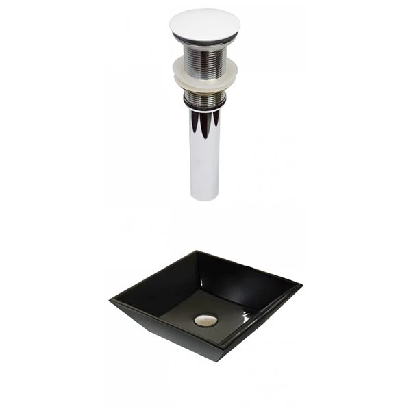 American Imaginations Black Ceramic Vessel Square Bathroom Sink With White Drain (16.1-in X 16.1-in)