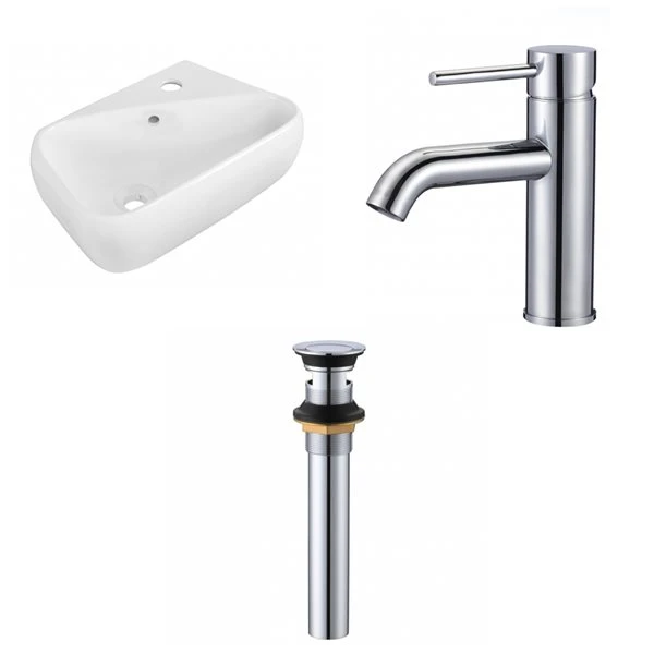 - Includes 1 bathroom vessel sink in white (1760), 1 bathroom sink faucet in chrome (28787), 1 bathroom sink drain in chrome (33592)