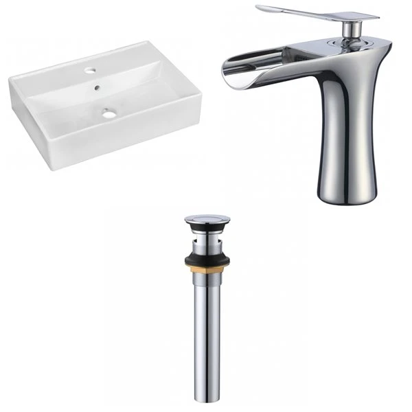 American Imaginations Ceramic Rectangular White Vessel Bathroom Sink With Overflow Drain And Faucet (13.75-in X 19.75-in)