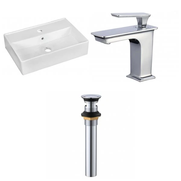 American Imaginations Ceramic Vessel Rectangular White Bathroom Sink With Faucet And Overflow Drain (13.75-in X 19.75-in)