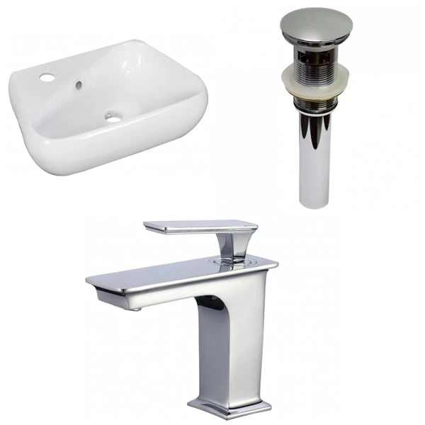 - Includes 1 bathroom vessel sink in white (1765), 1 bathroom sink drain in chrome (1795), 1 bathroom sink faucet in chrome (16750)
