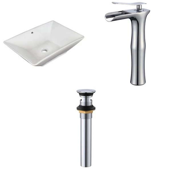 American Imaginations Ceramic White Vessel Rectangular Bathroom Sink With Faucet And Overflow Drain (14.75-in X 22-in)