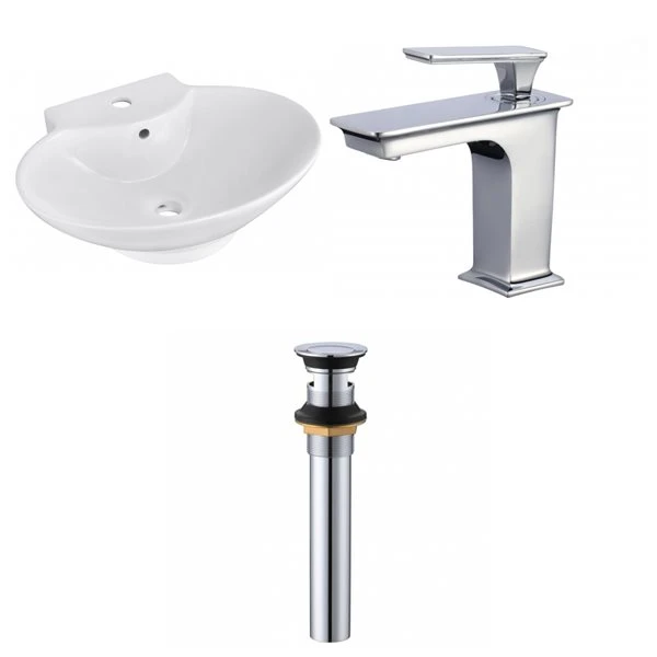 American Imaginations Ceramic White Wall Mount Oval Bathroom Sink With Faucet And Overflow Drain (17.25-in X 22.75-in)