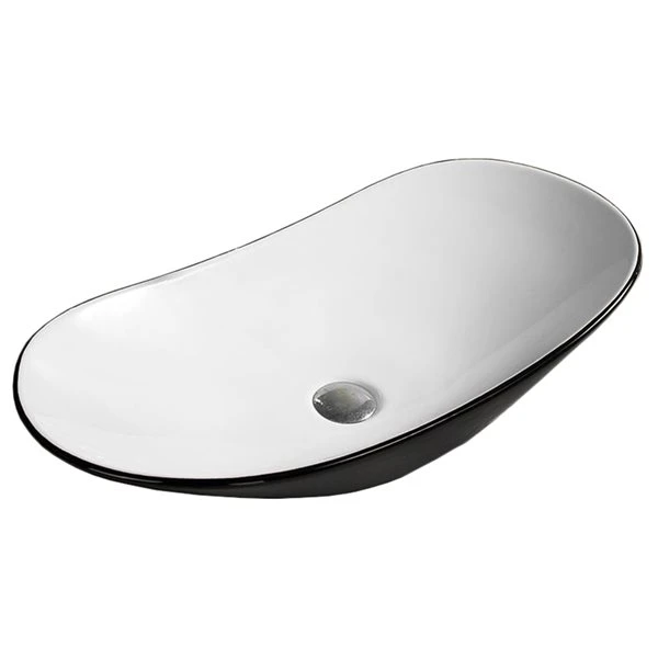American Imaginations Oval Black And White Ceramic Vessel Bathroom Sink (14.6-in X 28.5-in)