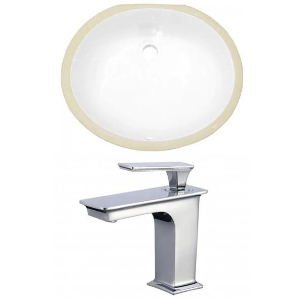 American Imaginations Oval White Undermount Bathroom Sink And Faucet With Overflow Drain (16.25-in L X 19.5-in W)