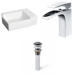 Be the first to review “American Imaginations Rectangular Ceramic White Wall Mount Bathroom Sink With Faucet And Drain (11.75-in X 16.25-in)” Cancel reply