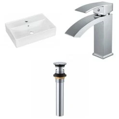 - Includes 1 bathroom vessel sink in white (1331), 1 bathroom sink faucet in chrome (28811), 1 bathroom sink drain in chrome (33592)