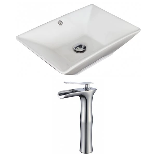American Imaginations Rectangular White Ceramic Vessel Bathroom Sink – Faucet And Overflow Drain Included (14.75-in X 22-in)