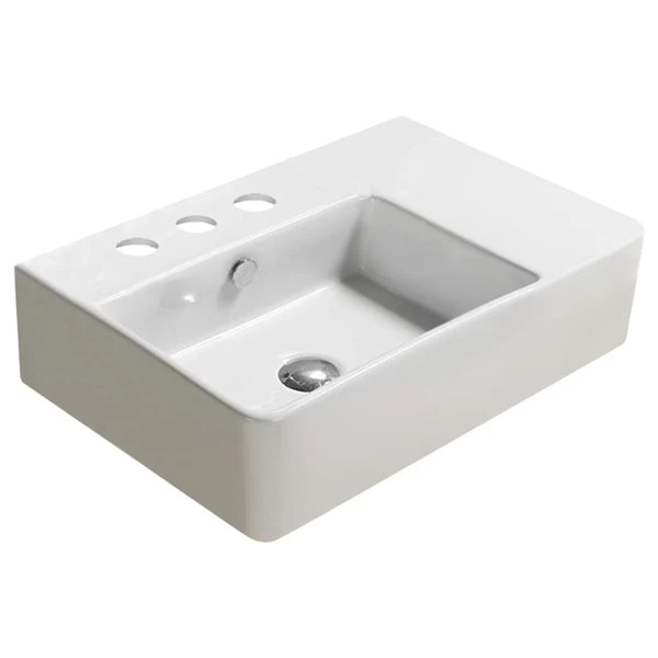 American Imaginations Rectangular White Ceramic Wall-Mount Bathroom Sink – Overflow Drain Included (16.1-in X 23.8-in)
