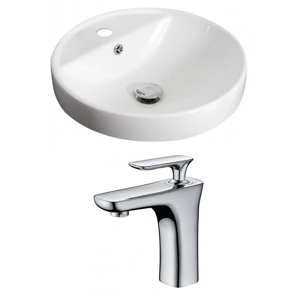 American Imaginations Round White Ceramic Drop-In Bathroom Sink – Overflow Drain And Faucet Included (18.25-in X 18.25-in)