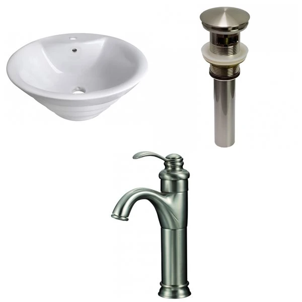 American Imaginations Round White Ceramic Vessel Bathroom Sink With Faucet, Drain And Overflow Drain (19.25-in X 19.25-in)