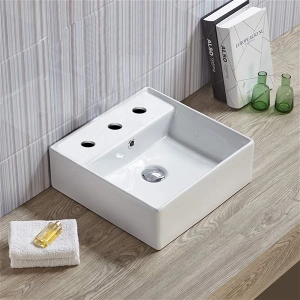 American Imaginations Square White Ceramic Vessel Bathroom Sink – Overflow Drain Included (15-in X 15-in)