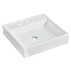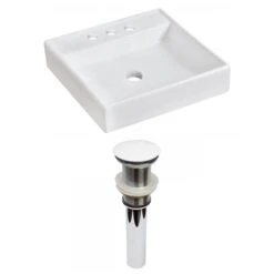 Be the first to review “American Imaginations Square White Vessel Bathroom Sink With Chrome Drain And White Hardware (17.5-in L X 17.5-in W)” Cancel reply