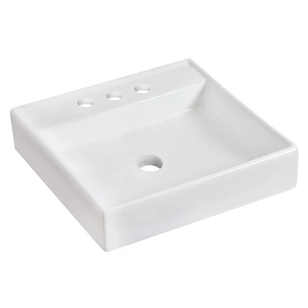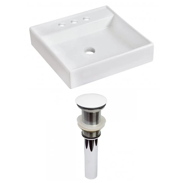American Imaginations Square White Vessel Bathroom Sink With Chrome Drain And White Hardware (17.5-in L X 17.5-in W)