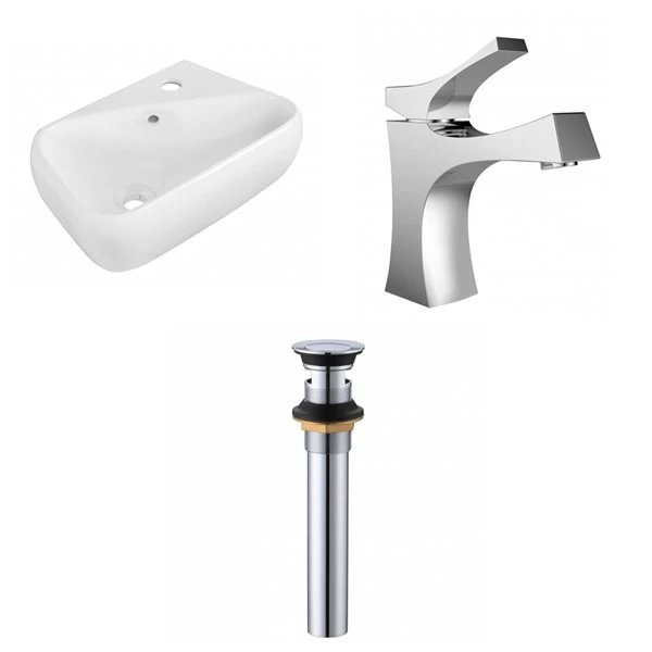 - Includes 1 bathroom vessel sink in white (1760), 1 bathroom sink faucet in chrome (1776), 1 bathroom sink drain in chrome (33592)
