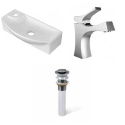 - Includes 1 bathroom vessel sink in white (1770), 1 bathroom sink faucet in chrome (1776), 1 bathroom sink drain in chrome (33593)