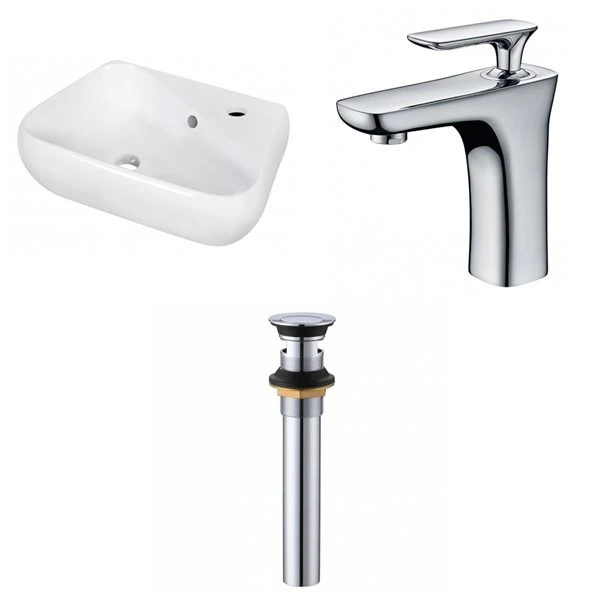 - Includes 1 bathroom vessel sink in white (1768), 1 bathroom sink faucet in chrome (1784), 1 bathroom sink drain in chrome (33592)