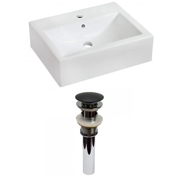 American Imaginations Wall Mount Rectangular Bathroom Sink With Chrome Drain And Black Overflow Drain – 16.25-in X 20.25-in