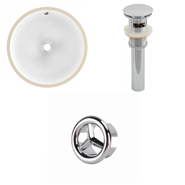 American Imaginations White 15-in.25-in Round Bathroom Undermount Sink With Chrome Hardware