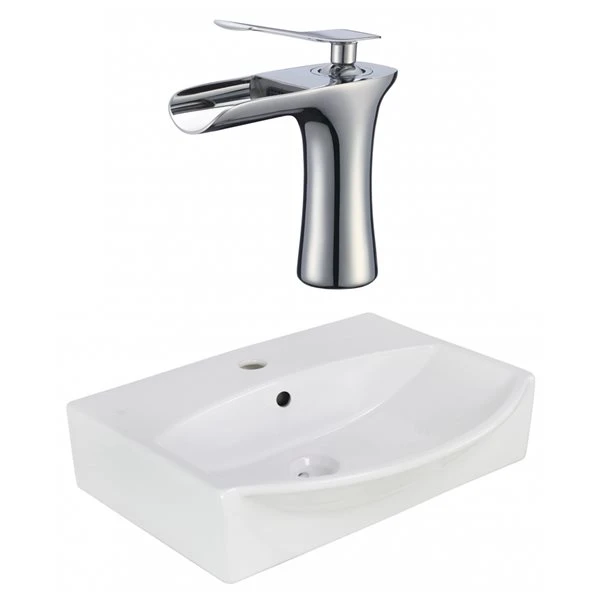 American Imaginations White 19.5-in Rectangular Vessel Bathroom Sink With Chrome Hardware