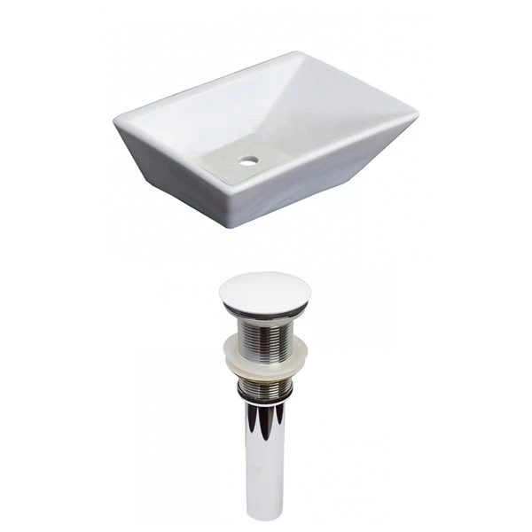American Imaginations White Ceramic 12-in Rectangular Vessel Sink Set With White Hardware
