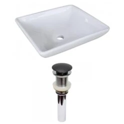Be the first to review “American Imaginations White Ceramic 15.75-in Square Vessel Sink Set With Black Hardware” Cancel reply