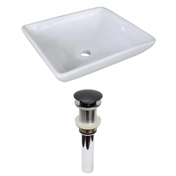 American Imaginations White Ceramic 15.75-in Square Vessel Sink Set With Black Hardware
