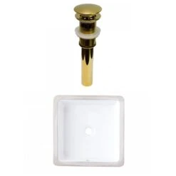 Be the first to review “American Imaginations White Ceramic 16-in Square Undermount Sink Set With Gold Hardware” Cancel reply