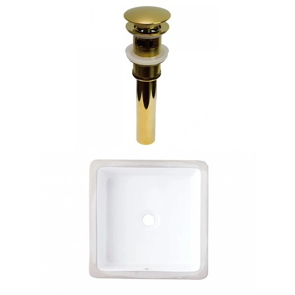 American Imaginations White Ceramic 16-in Square Undermount Sink Set With Gold Hardware