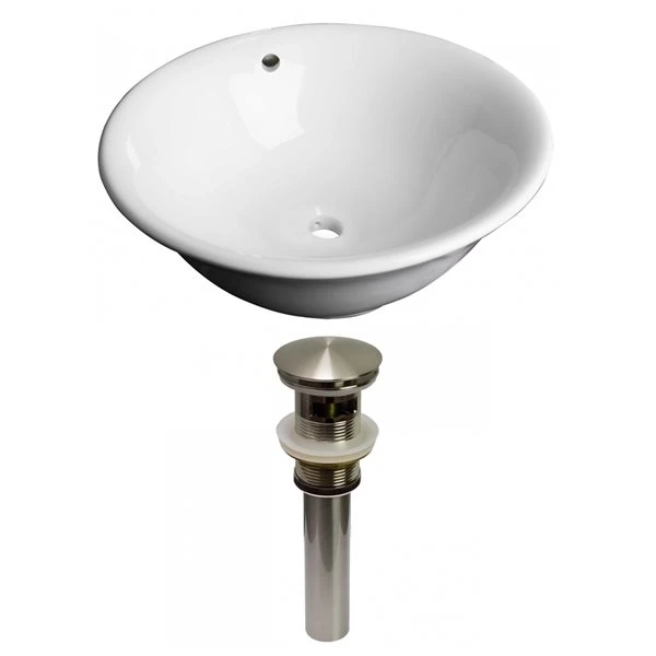 American Imaginations White Ceramic 17-in Round Vessel Sink Set With Nickel Hardware
