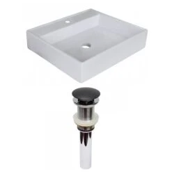 Be the first to review “American Imaginations White Ceramic 17-in Square Vessel Sink Set With Black Hardware” Cancel reply