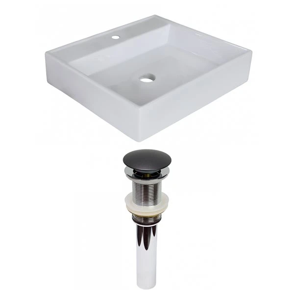American Imaginations White Ceramic 17-in Square Vessel Sink Set With Black Hardware