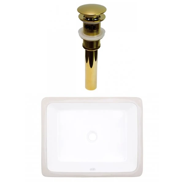 American Imaginations White Ceramic 19.5-in Rectangular Undermount Sink Set With Gold Hardware