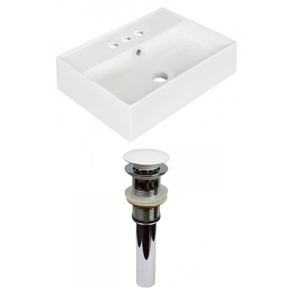 American Imaginations White Ceramic 19.75-in Rectangular Vessel Sink Set And White Hardware