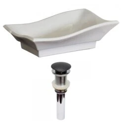 Be the first to review “American Imaginations White Ceramic 20-in Irregular Vessel Sink Set With Black Hardware” Cancel reply