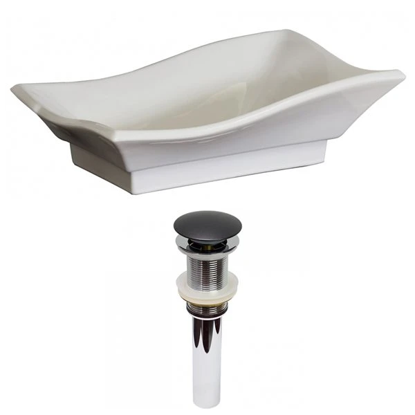 American Imaginations White Ceramic 20-in Irregular Vessel Sink Set With Black Hardware