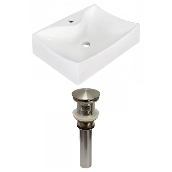 - This product includes: 1x bathroom vessel sink in white (1733), 1x bathroom sink drain in brushed nickel